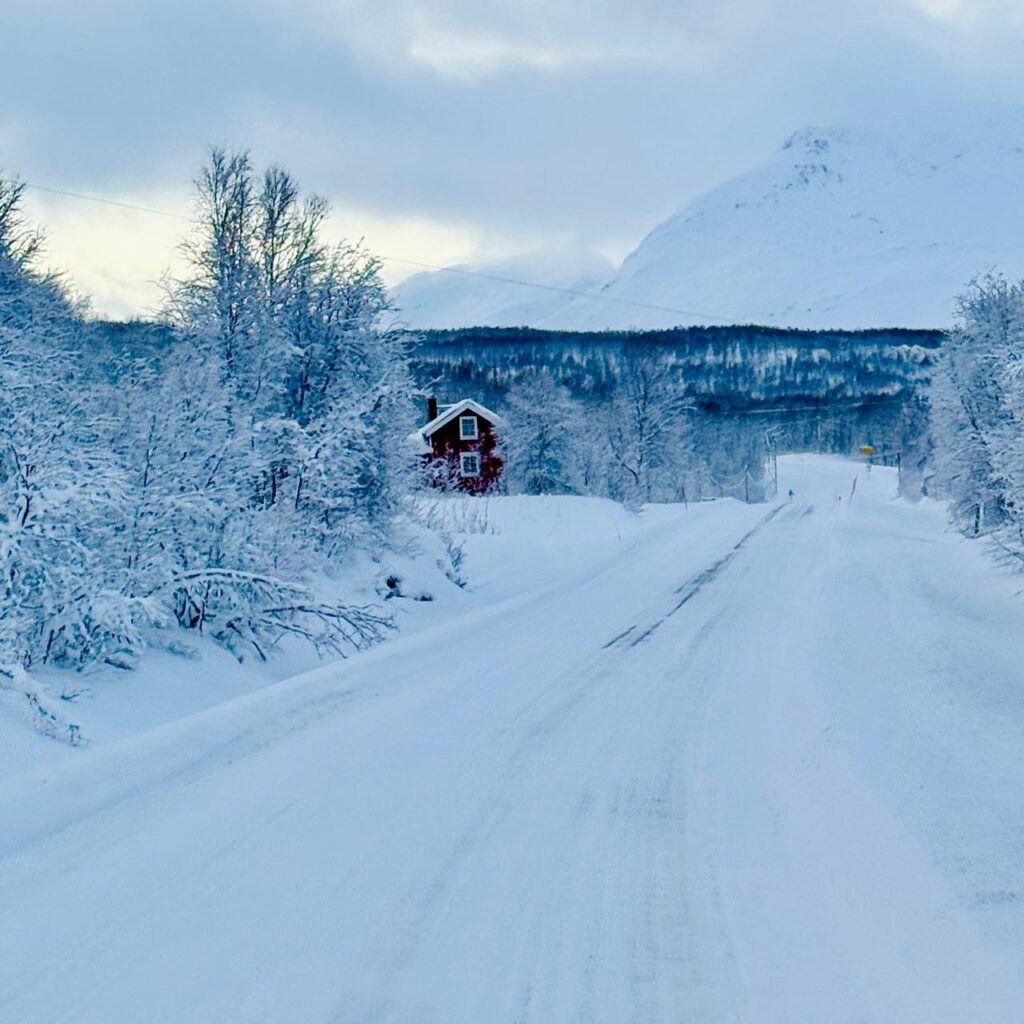 Estradas cobertas de neve. Lagos completamente congelados. Paisagens que parecem pinturas — brancas demais para serem reais. E aquela escuridão particular do inverno ártico, onde às 3 da tarde o céu já está escuro como se fosse meia-noite.